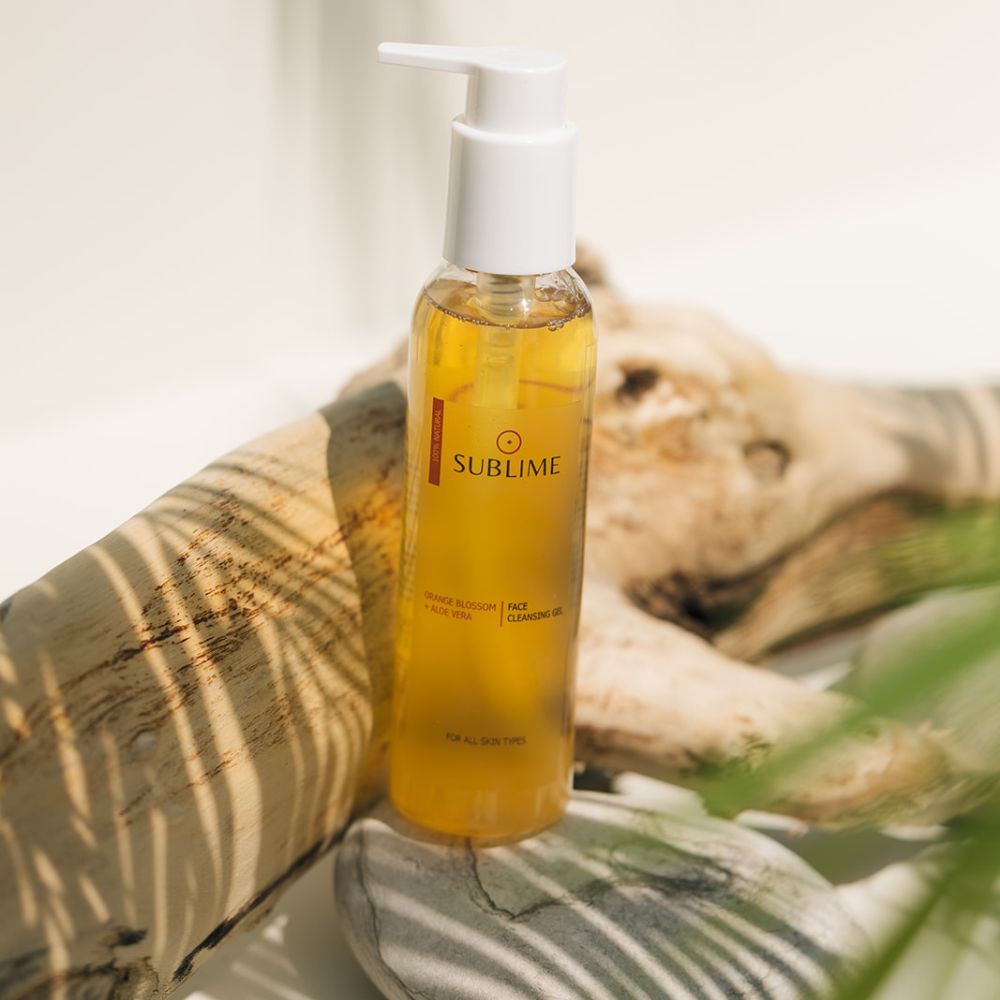 Formulated with aloe vera, bitter orange blossom water, and natural surfactants, this gel removes impurities while hydrating and soothing.